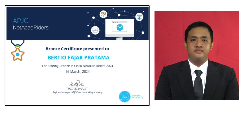 CIREBON, IKMI.AC.ID – Kabar menggembirakan datang dari Bapak Martanto, M.Kom., Dosen Cisco Academy STMIK IKMI Cirebon. Tiga mahasiswa bimbingannya berhasil meraih medali di ajang APJC NetAcad Riders Competition 2024 – Round 1, sebuah kompetisi bergengsi di bidang jaringan komputer yang diadakan oleh Cisco Academy Indonesia.