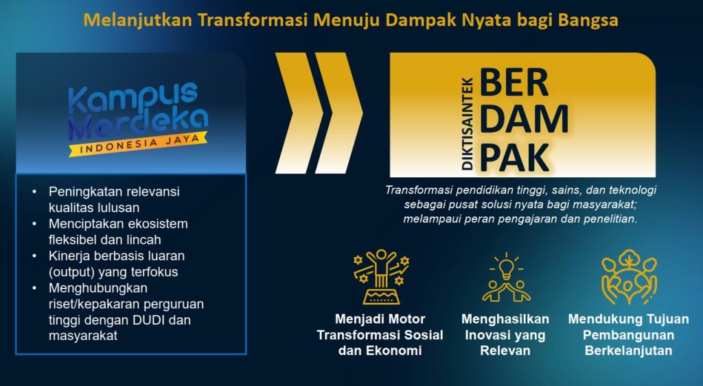 CIREBON, IKMI.AC.ID – Kementerian Pendidikan Tinggi, Sains, dan Teknologi (Kemdiktisaintek) Republik Indonesia telah meluncurkan program strategis “Diktisaintek Berdampak” sebagai bagian dari komitmen dalam mewujudkan visi Indonesia Emas 2045. Program ini bertujuan untuk memperkuat sumber daya manusia unggul, mengakselerasi inovasi berbasis riset, serta menjadikan perguruan tinggi sebagai simpul pertumbuhan ekonomi dan solusi nyata bagi masyarakat.
